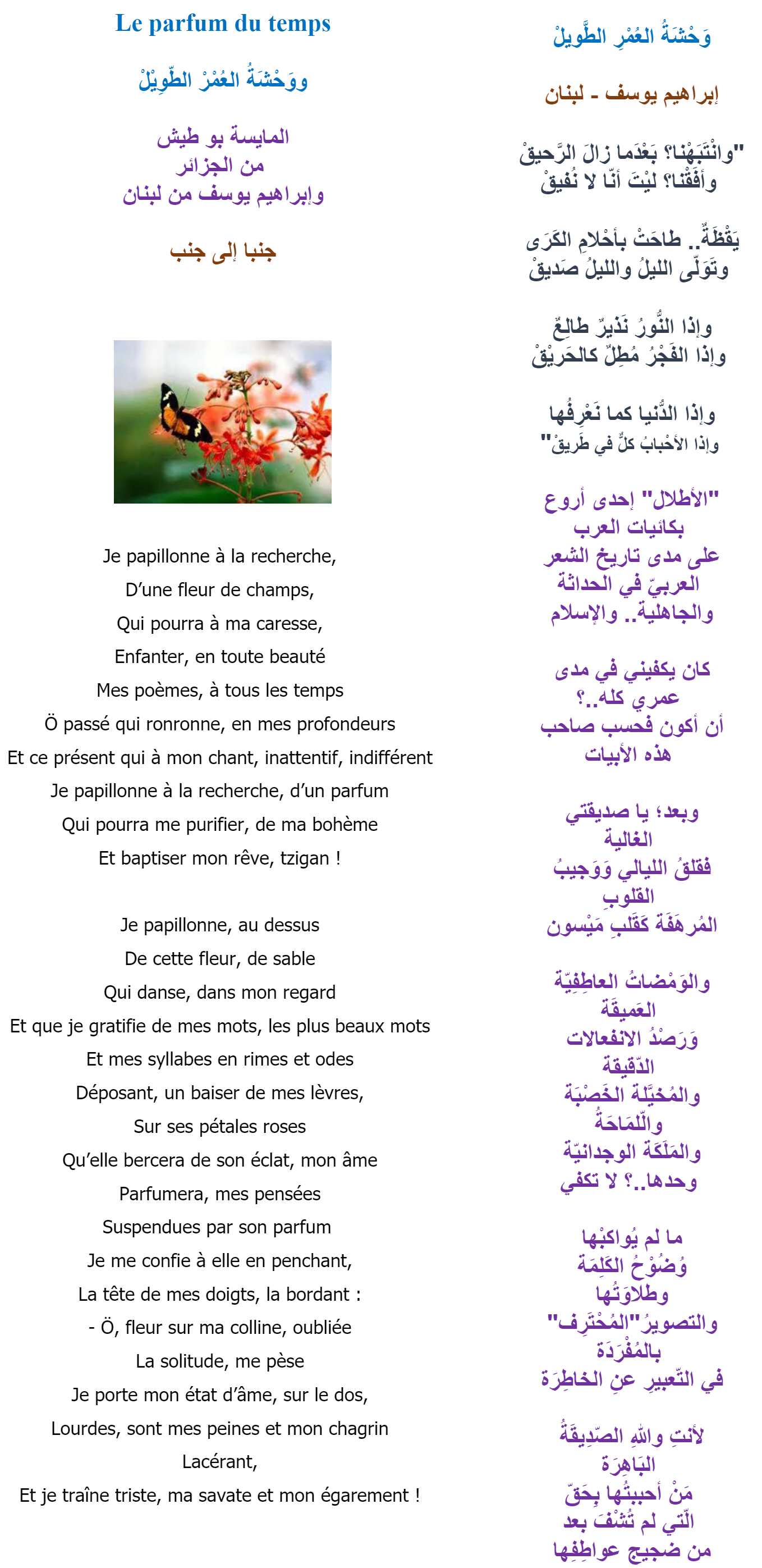 ووَحْشَةُ العُمْرِ الطَّويلْ Le parfum du temps